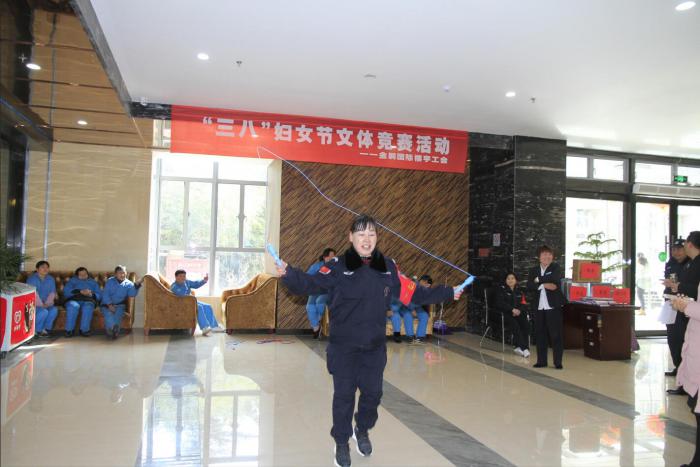 阳春三月,春回大地,在这春光明媚的日子里,为纪念“三月八日”国际妇女节,营造浓郁的节日气氛,丰富员工的业余文化生活,“三月八日妇女节”当天,金鹏物业组织保安、保洁队伍中的女员工开展了一场趣味体育活动—跳绳比赛。下午两点半,在金鹏国际一楼大厅,活动正式拉开帷幕,只见参加比赛的女员工们排列有序,着装整齐,精神抖擞的投入到跳绳比赛活动中。比赛活动在一片热闹声中进行着,说笑声、喝彩声此起彼伏,现场气氛十分热烈。经过几轮角逐,很快就产生了第一名第二名和第三名得主,物业公司相关领导为获得名次的员工发放了奖品。通过此次活动,充分体现了公司对员工的关爱,将进一步增员工的凝聚力,激发公司女员工扎实工作,爱岗敬业,以更加饱满的热情投入到物业工作中去。