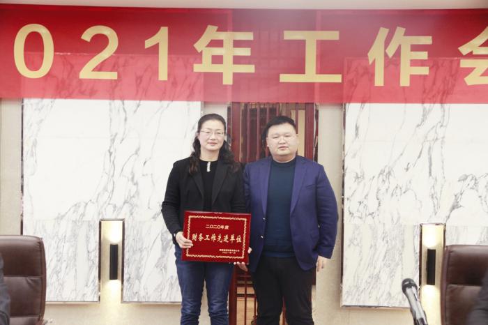 杨总为获得集团2020年度财务工作先进单位颁奖