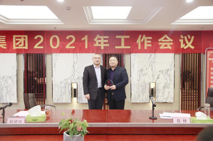 徐总为获得集团2020年度突出贡献奖获得者颁奖