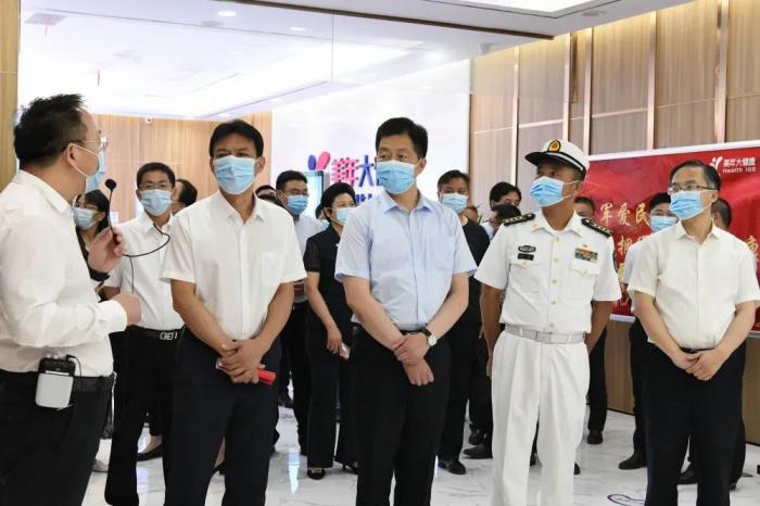 王宏伟总经理向前来观摩的省退役军人事务厅副厅长刘军,副市长林小异,宿迁军分区副司令董刚、市退役军人事务局葛家胜等领导进行讲解