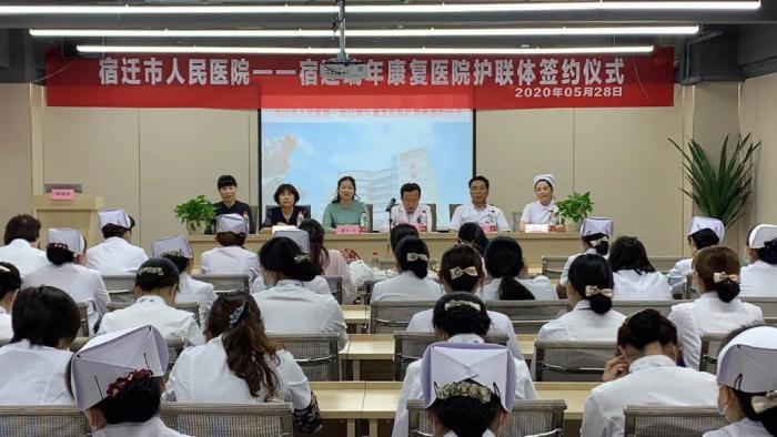 2020年5月28日,瑞年康复医院与市人民医院举行了护联体签约仪式。宿迁市人民医院护理部唐红兰主任、李文娟副主任等护理专家们和瑞年康复医院常务副院长李中、护理部井涛主任等出席签约仪式。